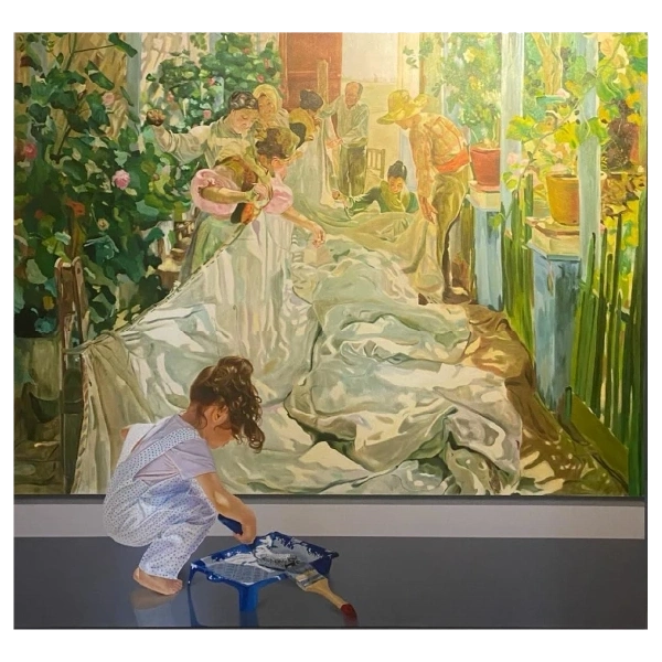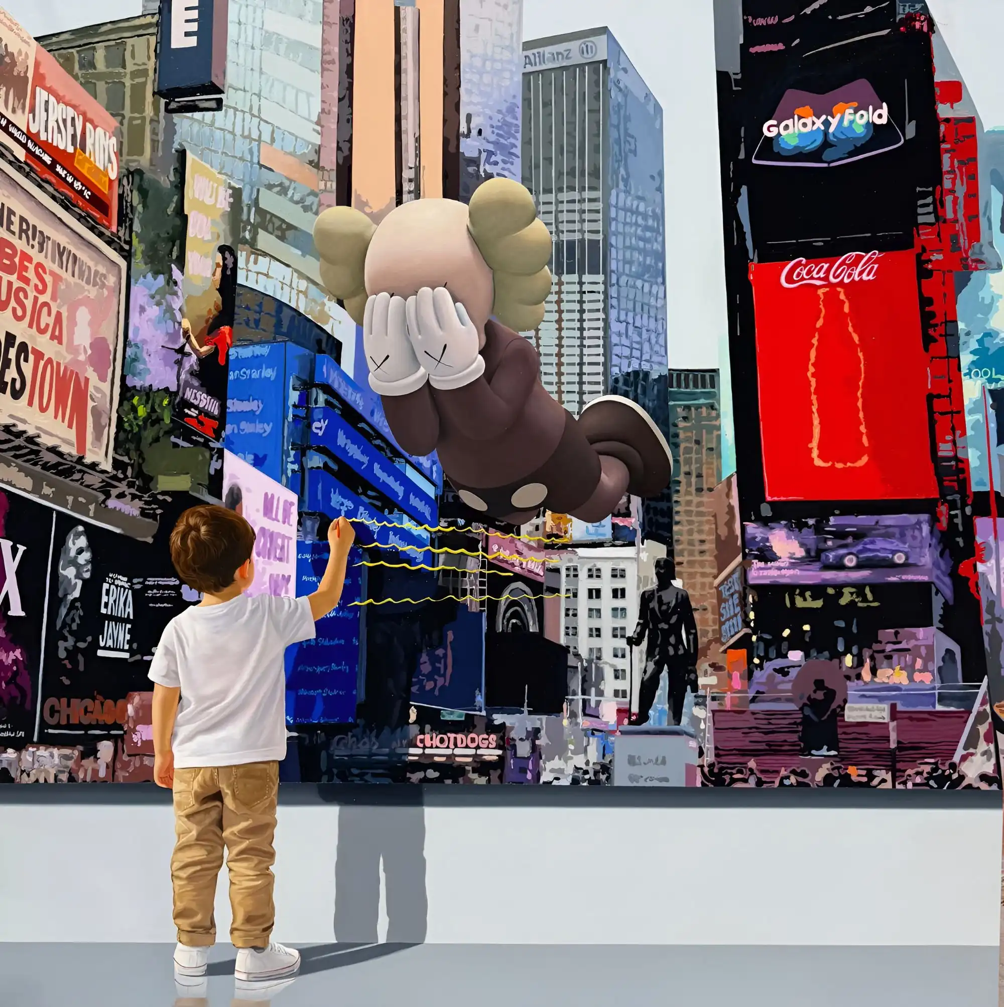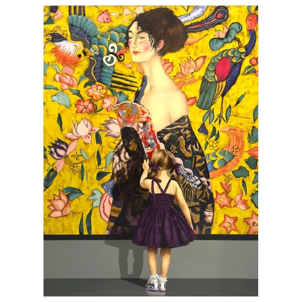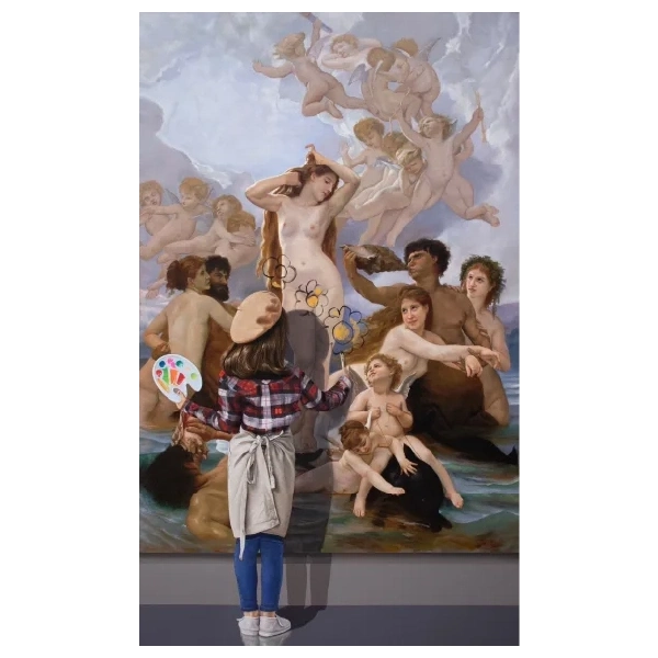 No obstante, la propuesta de Caraballo no zanja aquí, sino que se complementa con el uso indeterminado de las obras propias del arte moderno, que, con la presencia infantil en su producción, propicia un significado distinto al de la idiosincrasia de la obra maestra a la que el artista se remite. Esta serie en la que el artista ha trabajado por más de diez años, carga con un discurso estético en el que se refleja el constante interés por revelar la capacidad expresiva de la infancia, valiéndose de artistas canónicos como Pablo Picasso y Joan Miro, hasta abordar obras de artistas contemporáneos como Kaws y Murakami, los cuales han influenciado en el origen de movimientos artísticos posmodernos como el Superflat. De esta forma, el artista apela a la superposición para dar preponderancia a los cándidos gestos de los niños, los cuales se redibujan en un primer plano para revelar una sensibilidad tacita, que, sin la presencia infantil se quedaría en una simple apropiación.