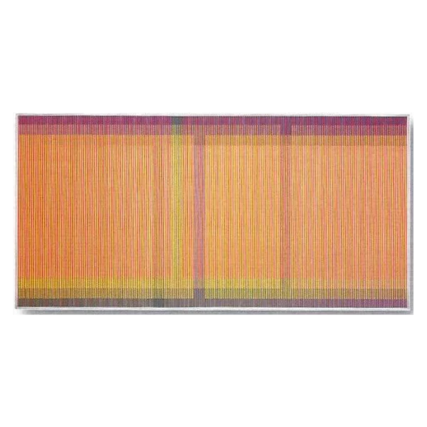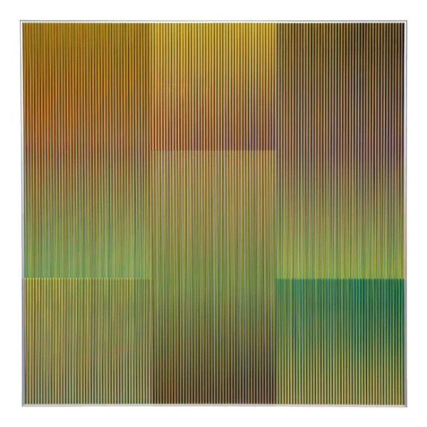 Cruz-Diez proposes to conceive color as an autonomous reality that develops in time and in real space without the aid of form or the need for support. His work encompasses eight investigations: Couleur Additive, Physichromie, Induction Chromatique, Chromointerférence, Transchromie, Chromosaturation, Chromoscope and Couleur dans l’espace.