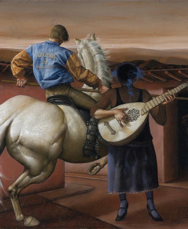 St. George and the dragon is one of the most recognized and difficult to assemble series by the master David Manzur. Inspired by the legend of the Christian martyr who defeats a monstrous creature, Manzur appropriates this story to turn it into a theatrical scene. One of David Manzur’s great qualities is his ability to construct images that contain multiple layers of reading. His works are not limited to figurative representation; they are loaded with symbolism and tension.